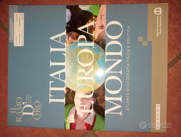 Libro scolastico di geostoria dal titolo "Il ramo d'oro. Dalla preistoria all'età di Cesare", con Atlante di geografia fisica e politica e Commento alla costituzione italiana.
