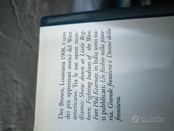 autore Dee Brown, il testo tratta della conquista del territorio americano da parte dei coloni bianchi, o "visi pallidi". 1860-1890: è il trentennio della «soluzione finale» del problema indiano, con la distruzione della cultura e della civiltà dei pellerossa. In questo periodo nascono tutti i grandi miti del West, Dee Brown è uno tra i massimi esperti di West americano. libro scritto nel 1970 copertina rigida