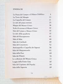 Copertina morbida, 94 pagine, 17x12 cm, illustrato, a colori. Saggistica, storia dell'arte, architettura, guida turistica. Piazza del Campo, Torre del Mangia, Cappella del Campo, Sale della quadreria, Risorgimento, Balia, Cardinali, Concistoro, Anticappella e Cappella dei Signori, Sala del Mappamondo, della Pace, dei Pilastri, Loggia della Fonte Gaia, Capitano del Popolo, della Signoria.