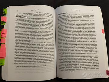 Libro Storia del Diritto Medievale e Moderno, sottolineato in alcune parti in matita.