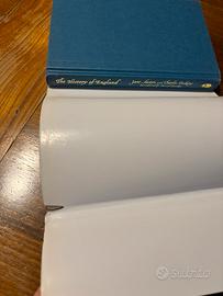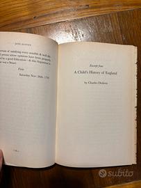Su richiesta consegna a mano a Bologna - libro in inglese “The History of England by Jane Austen and Charles Dickens” introduced by David Starkey. Si tratta di due storie differenti narrate dai due grandi scrittori, sulla storia dell’Inghilterra. 150 pagine di racconto storiografico, interessante per capire la loro visione della patria inglese. Copertina in vecchio stile (un piccolo strappo come in ultima foto), e libro in copertina di colore blu sottostante. Genere: tra la narrativa, la saggistica e il testo scolastico. Editore Icon Books