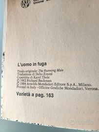 Libro L'uomo in fuga di Richard Bachman alias di Stephen King genere fantascienza, prima edizione collana Mondadori Urania N°962, 170 pagine, anno 1984, ottime condizioni, pagine ingiallite dal tempo, vendo a euro 30