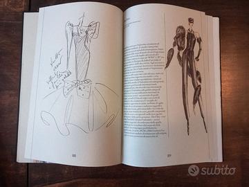 Edizione limitata dichiarata, timbrata a mano n. 1008 di 3.500 copie. In un astuccio a conchiglia nero su nero con timbro a secco. Pulito, luminoso, quadrato e senza segni di usura, con colori eccellenti in tutto il volume. In italiano e inglese. Testo principale di Andre Leon Talley. Copertina in quarto alto, tela su cartone, 206 pagine di carta vergata a mano di Miliani. Le illustrazioni includono schizzi, rendering, lavori a penna e inchiostro finiti, immagini fotografiche aggiunte da riviste.