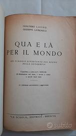 Sottotitolo: Un viaggio divertente nel regno della geografia. Scritto da Gualtiero Laeng e Giuseppe Latronico Seconda edizione del 1947 pubblicata dalla casa editrice "La Scuola" di Brescia. E' assente la copertina. Sono incluse 23 illustrazioni nel testo e tavole a colori e fuori testo. E' un volumetto divulgativo dedicato alla geografia e pensato per rendere l'apprendimento piacevole e divertente. Pagine n. 158.
