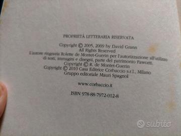 David Grann Z La Città Perduta Casa Editrice Corbaccio (Exploits) Copertina rigida (senza sovracoperta), 386 pag. Libro quasi vintage, fuori stampa, anno 2010, con codice ISBN 978-88-7972-012-8 (non riconosciuto). Il volume è in buone condizioni strutturali, senza scritte, sottolineature o strappi ma presenta molto ingiallimento, la maggior parte all'esterno ma alcune macchie di umidità ci sono anche nell'interno pagine senza, in nessun modo, compromettere la lettura. E' un'opera che fonde inchiesta giornalistica, biografia e diario di viaggio per raccontare la storia dell'esploratore britannico Percy Fawcett, ossessionato dalla scoperta di una civiltà perduta in Amazzonia. Il libro segue la scomparsa di Fawcett nel 1925, analizzando la sua vita, le sue spedizioni e il mistero, diventando un racconto avvincente su ossessione e scoperta.