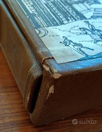È contenuto in una custodia in cartone e pelle, molto spessa, illustrata su entrambi i lati.