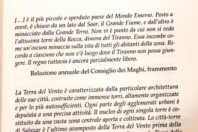 3 triologie complete in 9 volumi Cronache dal mondo emerso: numero 1 e 3 seconda edizione, numero 2 prima edizione Guerre dal mondo emerso: tutti prima edizione Leggende dal mondo emerso: numero 1 ristampa, numeri 2 e 3 prima edizione Condizioni ottime, per i più esigenti segnalo qualche piccolo segno del tempo ai lati delle copertine e il nome della precedente proprietaria scritto in piccolo sulla prima pagina bianca in 6 volumi. Interno ottimo si leggono perfettamente Prezzo: 89€ per tutti, non vendo singolarmente e non spezzo le serie Ritiro a mano a Milano o spedisco il giorno lavorativo successivo all'acquisto Ringrazio in anticipo chi lascerà feedback positivo 5 stelle che ricambierò prontamente