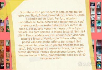 Vendo Lotto 169 Libri Parte Tre. Qui troverete 30 titoli, per i restanti andate nelle altre 5 parti presenti nei miei annunci, scorrendo le foto potrete vedere anche le condizioni dei libri. Consegna a mano su Roma, presso domicilio.