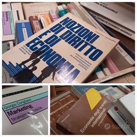libri scolastici e testi di studio di economia ed attinenti ambiti di macroeconomia, marketing, scienza delle finanze, tecnica aziendale, codice delle società, diritto finanziario, economia politica.