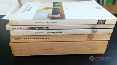 Lotto 5 libri narrativa edizione Einaudi: 1) Thomas Mann, I Buddenbrook. Decadenza di una famiglia; 2) Primo Levi, La chiave a stella: 3) Jean-Philippe Toussaint, La televisione; 4) Marcel Proust, L'indifferente; 5) Piergiorgio Paterlini, Matrimoni. Dieci coppie gay e lesbiche si raccontano. Volumi in buone condizioni.