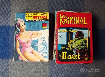 Fantastico lotto di 12 fumetti formato tascabile vintage, edizioni uscite negli anni '60/'70. Oggetti piuttosto rari e difficili da trovare in commercio. Il lotto contiene fumetti stile: giallo noir, soft erotico, azione guerra, thriller fantasy, western. Condizioni da molto buone a buone a discrete, alcuni con i segni del tempo, alcune pagine scollate, sbiaditure nel colore, pieghe, piccoli strappi, bordi un po sciupati. Per collezionisti del settore: fumetti vintage, rarities, comics, mirabilia. - Beat Teddy BOB / Fuoco Bianco - N.67 (1969) - Beat Teddy BOB / La maschera di vetro - N.68 (1969) - Kriminal - Il tappeto persiano - N. 224 (1969) - Kriminal - La morte viaggia in II classe - N. 376 (1972) - Giallo Western - Calamity Jane - N. 10 (1966) - MIKI - Pioggia di dollari - N.409 (1970) - VAMP! - La Prima Notte - N. 111 (1971) - Super Eroica / Grandi Storie Inedite 4 - N. 209 (1974) - Bazooka - Guerra su tutti i fronti - N. 134 (1971) - RAF Royal Air Force - N 4 (1973) - Isabella - il serpe sulla pelle - N. 148 (1972) - L'angelo con la pistola - N.3 (1972) Chiedere info o foto da vedere.
