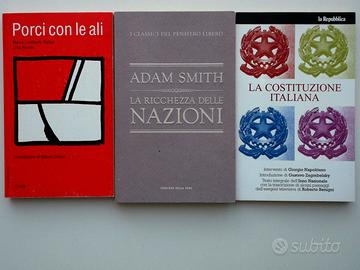 - J. Locke - Seneca - Platone - Epicuro - Cicerona - Racconti - Ezra Pound - Poesie - Canti - Latini - Umberto Eco - Sciascia - Dante - Rimbaud - Gibran - Classici - Agopuntura - Canti kurdi - Ibsen - Adam Smith - Porci con le ali - Costituzione italiana - Storia letteraria e civile - Storie fantastiche - Hesse -