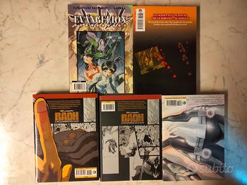 In vendita un lotto di 5 volumi manga che include titoli cult come Evangelion e lo spin-off di Ken il Guerriero, oltre a titoli action e thriller psicologici. I volumi sono editi da Planet Manga e Dynit Manga.