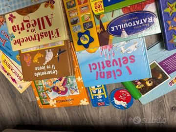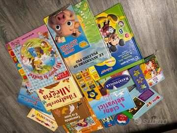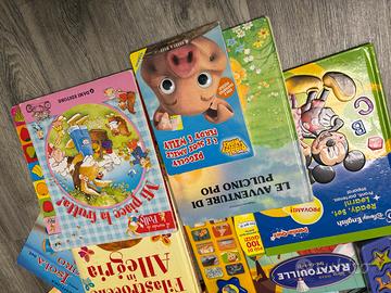 Vendo lotto misto di libri per bambini, ideale per età 3-8 anni. Il lotto comprende: •Fiabe classiche (Biancaneve, Cenerentola, ecc.) •Libri Disney (Topolino, Winnie the Pooh…) •Libri educativi (avventure, animali, racconti) •Libri interattivi con pulsanti e suoni •Libri puzzle e con attività Contenuti: •Storie e fiabe •Apprendimento e gioco •Personaggi Disney Condizioni: •Buone condizioni generali •segni di utilizzo •Libri completi e utilizzabili
