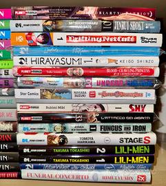 * Astro Boy 1-2 (J-Pop) — 20 € * Black Butler Steelbox Sigillata — 25 € * Blood-Crawling Princess Of A Ruined Country 1 — 4 € * Don’t call it mystery 1 (con card) — 4 € * Drifting Net Café 1 — 4 € * Ennead 1 — 10 € * Funeral Concerto — 5 € * Fungus and iron 1 — 3 € * Hiraysumi 1 — 4 € * Insomniac After School 1 variant — 4 € * Jinmen 1-5 — 25 € * Jinrui Shoku 1 — 4 € * La strana casa 1 — 5 € * L’attacco dei giganti 33 variant sauna — 7 € * L’estate in cui Hikaru è morto 1 (con card) — 10 € * Liddell 1 — 4 € * Lili-Men 1-2 — 7 € * Moriarty the patriot 1 (Discovery edition) — 6 € * Planet of the fools 1-2 — 7 € * Re Cervin 1-3 — 12 € * Seven Deadly Sins 41 variant — 10 € * Shibatarian 1-2 — 8 € * Shy 1 — 3 € * Sing yesterday for me 1-2 (con cartolina) — 7 € * Stage S 1 — 4€ * The Deer King 1-3 — 12 € * Undead Unluck 1 variant (con tattoo) — 5 €