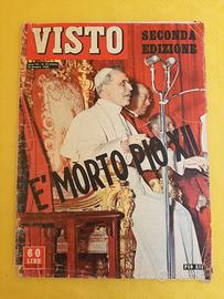 VISTO – 18 Ottobre 1958 – Seconda Edizione - Numero raro stampato i giorni dopo la morte di Pio XII. Solo questo pezzo vale il costo dell'intero lotto. Insieme: L’Astrolabio 1970 e In Alto 1957. Tutte originali e complete. #rivisteVintage #VISTO1958 #SecondaEdizione #collezionismo #rivisteEpoca #anni50 #anni70 #storiaItalia #memorabilia #vintageItalia #editoriaStorica #PioXII #mortepapa