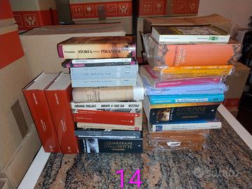 Vendo un imponente lotto di quasi 2000 libri. Sono il frutto di varie scremature: non ci sono libri ammuffiti o con fioriture, salvo qualche eccezione, tenuta solo per il valore o per il danno modesto (1-2% del totale). I libri sono ben tenuti, sempre con fisiologiche eccezioni, ma molte copie sono davvero in ottimo stato. No --->enciclopedie, Harmony o scolastici Sì ----> Narrativa, classici, storia, musica, arte, alcuni fumetti ecc. Cedo questo imponente stock esclusivamente per imminente necessità di liberare i locali e per l'impossibilità fisica e logistica per un mercatino degno di nota. Ho documentato il lotto fotografando i libri scatolone per scatolone. Invito i seri interessati a contattarmi per ricevere il materiale fotografico completo e farsi un'idea precisa del valore Ho testato personalmente il potenziale del lotto un paio di anni fa (da allora ho aggiunto altro materiale) in un piccolo mercatino sfigatissimo, sperduto nella campagna, con forse 500 persone in una intera giornata, e ho venduto benissimo con soli 14 cartoni (meno di un terzo del totale). Questo conferma l'ottima commerciabilità della merce, specialmente in piazze più importanti. VALUTO OFFERTE per il blocco completo N.B. LOGISTICA E RITIRO: Il lotto è quasi completamente inscatolato e si trova nel seminterrato, con possibilità di accostare il furgone proprio davanti all'ingresso della rampa. A causa di un infortunio alla spalla, non mi è possibile aiutare nelle operazioni di carico, pertanto l'acquirente dovrà provvedere autonomamente allo spostamento dei colli. Nota: Circa 300-400 libri sono ancora a scaffale, l’acquirente dovrà munirsi di circa 10 scatole proprie per il loro trasporto.