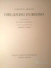 Introduzione di Riccardo Bacchelli. 3 volumi in folio grande. Tavole e illustrazioni di Fabrizio Clerici. Edizione limitata a 350 esemplari. Volume 1: xviii [ii] 340 [8] pagine. Ogni canto introdotto da vignetta in bistro. Volume 2: [viii] pagine 80 tavole (alcune a doppia pagina). Volume 3: [viii] pagine tavole 81-158 (alcune a doppia pagina). Rilegatura in brossura rivestita in carta vergata verde scuro con titolo in nero al piatto anteriore per ciascun volume, entro chemise cartonata con profili e titolo in nero al dorso, entro custodia. Edizione illustrata e limitata a 350 esemplari impressi su carta appositamente fabbricata dalla Cartiera Ventura di Cernobbio. Impaginazione, composizione e stampa a cura della stamperia Fantoni di Venezia. Tavole preparate da Annibale Belli e Giovanni Trimboli e stampate in litografia, da 8 a 11 toni, negli stabilimenti Luigi Fattorini di Milano e Giovanni Trimboli di Rho. Legatura di Giovanni de Stefanis e della Torriani.