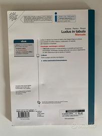 Libro ''Ludus in tabula gradus primus'' , di grammatica latina per scuole superiori. Il libro è completo di manuale aggiuntivo, venduto singolarmente a 15 euro. Qualora si volesse acquistare solo uno dei due scrivetemi. Sono entrambi in ottime condizioni, eccezion fatta per qualche segno di usura esterno , gli esercizi al'interno, se svolti, sono svolti solo a matita. Codice ISBN 9788808621221