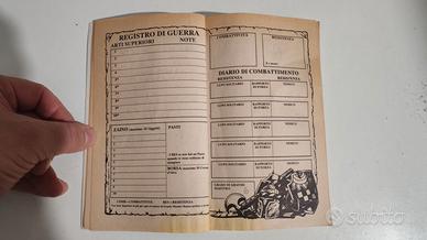 Librogame Prima edizione Ottobre 1993 E.Elle, in buono stato: le pagine del “registro di guerra” e “diario di combattimento” sono state scritte a matita e accuratamente cancellate.