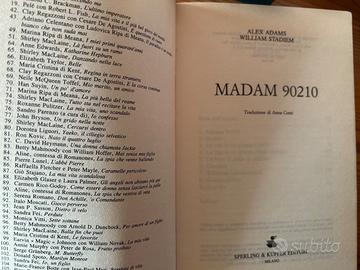 Libro vintage del 1994 "Madam 90210. La mia vita, le mie ragazze squillo e le grandi star di Hollywood " di Alex Adams e William Stadiem. Copertina flessibile, editore Sperling & Kupfer, in lingua italiana.