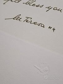 Madre Teresa di Calcutta rara citazione scritta e firmata a mano in tecnica incisoria Acquatinta.