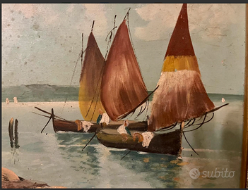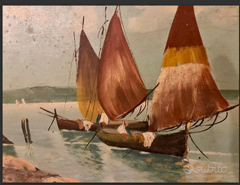 MAESTOSO e PREGIATO dipinto ad olio su tela raffigurante "PAESAGGIO MARINA con BARCHE" dell'artista VILLA racchiuso in PREZIOSA cornice. VINTAGE/ANTICO riconducibile agli anni '40. CONDIZIONI: ottimo stato conservativo ma essendo un articolo antico/vintage può presentare i lievi segni del tempo che ne attestano l'originalità e il fascino (ANGOLI CORNICE da RIPRENDERE). Proveniente da collezione privata Villa Veneta del '900. MISURE: L48xh38cm c.a.