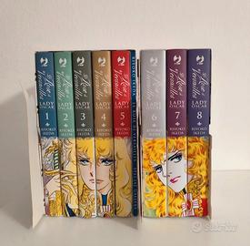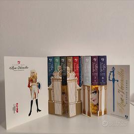 Box 1 + box 2 senza pellicola del manga Le Rose di Versailles Lady Oscar serie completa Ita (vol. 1 -5 e 6 - 8) compresi il libretto con tutti i frontespizi originali, la paper doll di Lady Oscar e segnalibro. Ottime condizioni come da foto.