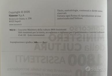 Vendo l’ultima e più aggiornata edizione (2026) del manuale per il concorso per assistenti culturali cod. 01, attualmente in svolgimento.
