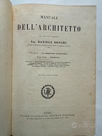 Due volumi de “ MANUALE DELL’ARCHITETTO”, dell’ing. DANIELE DONGHI, stampati a TORINO da EDITRICE TIPOGRAFICA -EDITRICE TORINESE, uno “biblioteche ed archivi, impianti e fabbricati per lo sport “, l’altro “ sedi di società commerciali di aziende giornalistiche, librarie ed editrici”.