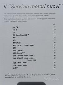 "Servizio Motori Nuovi " con dati tecnici necessari al montaggio dei motori di ricambio semicompleti e/o alleggeriti per modelli: