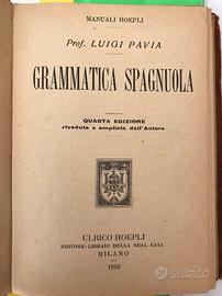 Manuale Hoepli "Grammatica Spagnuola" in ottime condizioni. Quarta edizione 1919.