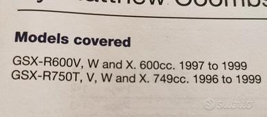 Come da foto reali, manuale di officina originale Haynes del 1999 per motocicletta Suzuki GSXR600, 600V, 600W e GSXR750 T, V, W, X dal 1996 al 1999. Foto in b/n e colori, lingua inglese, copertina rigida, molto bello.