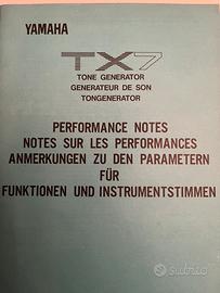 Vendo 3 manuali originali del glorioso expander YAMAHA TX7 Vedere anche l'altra inserzione con vendita del modulo