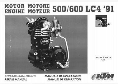 Manuali officina per KTM 500-560-600 LC4 in ITALIANO e manuali officina manuali di uso e manutensione e manuali part list con esplosi sempre per motori 500-560-600 LC4 una guida fotografica che segue passo passo lo smontaggio e il rimontaggio del motore con controlli dimensionali e geometrici dei vari pezzi del motore e completo di coppie di serraggio. Dispongo di altri manuali officina per motori KTM LC4 alcuni in italiano manuali di uso e manutensione e manuali cataloghi parti di ricambio con esplosi.