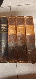 In vendita la celebre opera bibliografica di Jacques-Charles Brunet, "Manuel du Libraire et de l'Amateur de Livres". Si tratta della quarta edizione, pubblicata a Bruxelles nel 1838 dalla Société Belge de Librairie. L'opera è completa in questa sua specifica emissione, composta da 4 volumi che racchiudono l'intero dizionario bibliografico e la tavola metodica (catalogo ragionato). Caratteristiche del set: Autore: J.-Ch. Brunet Edizione: Quatrième Édition (Quarta Edizione), Bruxelles, 1838. Formato: 4 volumi (Opera completa). Legatura: Mezza pelle dell'epoca. Il Tomo 1 presenta una legatura nera con fregi dorati, mentre i Tomi 2, 3 e 4 presentano una legatura marrone con decorazioni a greca. Stato di conservazione: Struttura: I volumi sono solidi e ben ancorati. Le cerniere sono integre e non presentano distacchi tra il dorso e il blocco del libro (nonostante i segni del tempo). Estetica: Le legature sono vissute, con evidenti abrasioni e mancanze di pelle sui dorsi (particolarmente nei volumi 2, 3 e 4) e sui piatti, come mostrato in foto. Il Tomo 1 è il meglio conservato dei quattro. Interni: Completi e perfettamente fruibili. Si segnala la presenza di fioriture (macchie di ossidazione) tipiche della carta dell'epoca, che non pregiudicano la lettura. Note: Un classico intramontabile, fondamentale per chiunque si occupi di libri antichi, commercio librario o bibliografia. Ottimo come esemplare da studio o per chi cerca un'edizione originale dell'Ottocento a un prezzo accessibile.