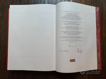 Descrizione: Legatura in pelle naturale "Veau Aniline", tinta alla botte in colore rosso, con titoli in oro al dorso a cinque nervature e realizzata artigianalmente presso la legatoria "L’Arte del Libro" di Bruno Superti in Todi.