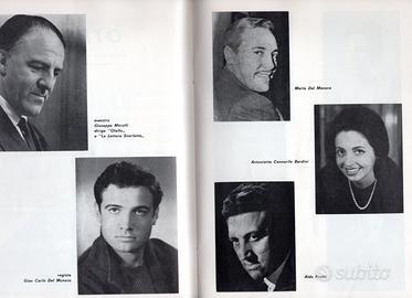 Libretto con i protagonisti di tutte le opere, compresa una piccola fotografia, interprete principale fu Mario Del Monaco in Otello, ma anche Aldo Protti in Otello e Barbiere.