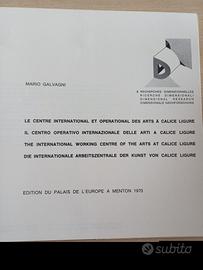"Le Centre International et Operationnel des Arts à Calice Ligure", appartiene alla serie "Recherches Dimensionnelles n.2", pubblicata dalle Editions du Palais de l'Europe a Mentone nel 1970. Stile Architettonico: Le forme plastiche e scultoree mostrate nell'immagine sono tipiche dello stile di Galvagni, che spesso utilizzava geometrie complesse per esplorare nuove relazioni tra spazio e percezione umana. Un esempio celebre della sua opera in Liguria è la cosiddetta "Casa con le orecchie", che condivide un linguaggio visivo simile. Libro multilingue: italiano, inglese, tedesco e francese