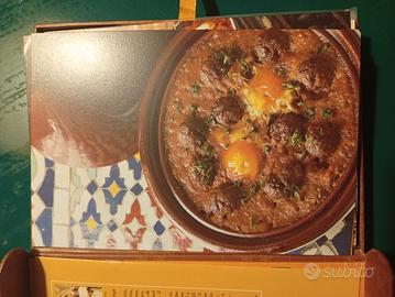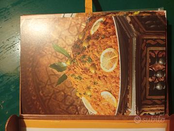 Insolito package e molto riuscito con schede da applicare eventualmente anche al muro. le ricette complete sono dal ristorante famoso Al Mounia di Parigi Madrid e Casablanca e suppongo da chef. Nuovissimo per una cucina originale.