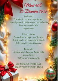 Menù dall 8 dicembre 2025 al 1 gennaio 2026 . Uscita Caserta nord.