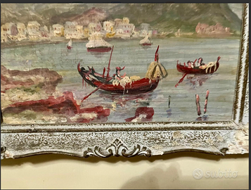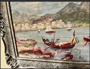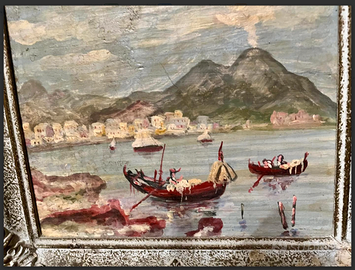 RAFFINATO ed ELEGANTE dipinto miniatura "VEDUTE NAPOLETANE dell'800", racchiuso in preziosa cornice d'epoca. Antico/Vintage riconducibile alla metà del XX° secolo. CONDIZIONI: ottimo stato conservativo ma essendo un articolo antico/vintage può presentare i lievi segni del tempo che ne attestano l'originalità e il fascino. Proveniente da collezione privata Villa Veneta del '900. MISURE: L30xh26cm c.a.
