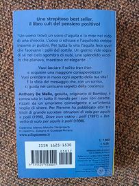 Anthony De Mello ricorda che spesso "la vita è quella cosa che ci accade mentre siamo impegnati a fare altri progetti", mentre ce ne stiamo addormentati aspettando che qualcosa succeda. Il suo non è solo un invito, è un grido: "Svegliatevi!". Con grande umorismo e tanta semplicità, tra parabole indiane, battute, storielle divertenti, ci porta ad aprire gli occhi, a sbarazzarci delle tante etichette che gli altri ci affibbiano e dietro le quali noi stessi talvolta ci nascondiamo, e a prendere in mano ogni aspetto della nostra vita.