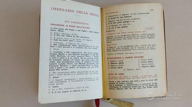 ANTICO MESSALE DEI FEDELI DEL 1965 DA COLLEZIONE, CONSERVATO PER 60 ANNI ED E’IN OTTIMO STATO CON TUTTE LE PAGINE INTEGRE E BEN LEGGIBILI. E’ UN EDIZIONE STAMPATA E CONCESSA IN ESCLUSIVA ALLA CURIA. CONTIENE PREGHIERE, CELEBRAZIONE E PARTECIPAZIONE ALLA S. MESSA E LA SPIEGAZIONE DI TUTTE LE SANTE FESTE. LE SUE DIMENSIONI SONO DI 14 X 9,5 E 1,5 Cm. DI SPESSORE. PAGAMENTO SOLO BONIFICO, DA AGGIUNGERE LE SPESE DI SPEDIZIONE.