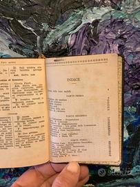 Messale Vesperale – Sac. Antonio Mistrorigo – Edizione 1956 Testo bilingue Latino–Italiano – Casa Editrice Luigi Favero, Vicenza Messale devozionale del 1956, in ottime condizioni generali, con normali tracce del tempo e dell’uso. Formato cm 8,5 × 11,5, pp. 382 + indice, taglio rosso. All’interno è presente un ricordo manoscritto del pellegrinaggio da Prato a Pompei (14 marzo 1956) e la benedizione del Vescovo Fiordelli, elementi che aggiungono valore storico e collezionistico. Completo del segnalibro in tela azzurra originale, con naturali variazioni di colore dovute al tempo. Interno molto ben conservato, caratteri nitidi, struttura solida.