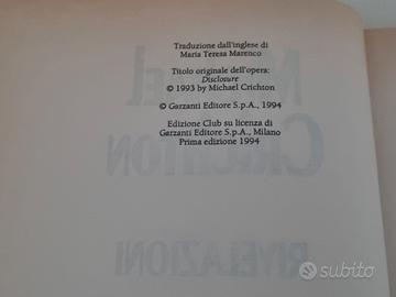 Michael Crichton Rivelazioni Libro Edizione Club Prima edizione 1994 thriller