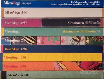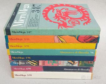 Riviste Micromega; disponibili i seguenti numeri: 3/87 – 2/91 – 3/91 – ’96 – 1/96 – 2/96 – 4/99 – 5/99 - 6/2014, tutte in ottime condizioni. Prezzo 5 Euro l’una. In blocco le 9 riviste: 40 Euro. Spedizione a partire da 3 Euro a seconda della quantità e del tipo di spedizione preferito.