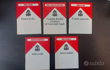 Roma, Stampa Alternativa , 1994, cofanetto contenente dieci libretti in 24to (cm. 14 x 10,5) punto metallico, pp. 46 circa ciascuno. Contenente: Contiene: Amore Malato di Carlo Lucarelli - La Collina dei Bambini di Eraldo Baldini - Ultima Pagina con Figure di Sandro Toni - Cosimino Rucellai e il Mistero di Vicolo degli Angeli di Danila Comastri Montanari - Ti Ricordi Dien Bien Phu? di Pino Cacucci - Il Feudo di Gianni Materazzo - Atto di Dolore di Gianfranco Nerozzi - Veglia Mortale di Elisabetta Monica - Notturno di Alex Conti - A.S. di Giorgio Cremonini - Prigioniera dei Mondi di Francesco Scalone - La Casa di Giampiero Rigosi - Divano-letto di Simona Rivolta - Tornando a Casa di Sabina Macchiavelli - Sangue, Sesso, Soldi di Rita Boini - Beatrice di Alfredo Colitto - Baygon. Bologna, un dramma familiare