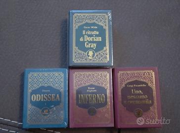 4 Volumi di Libri classici della Letteratura in miniatura. -Luigi Pirandello (Uno,nessuno e centomila 2€ ) -Oscar Wilde ( Il Ritratto di Dorian Grey 5€ ) -Omero (L'Odissea I parte 3 €) -Dante Alighieri (Inferno 3 €) Libri Ufficiali DeAgostini (Modifica poiché il prezzo di consegna generato da Subito era troppo elevato) 10€ ovviamente per tuutti i volumi, sennò per un singolo prezzo indicato sopra