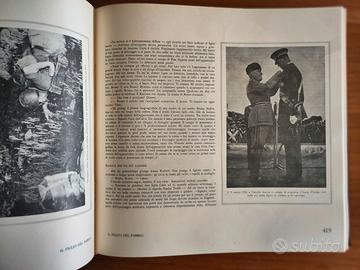 Monumentale opera storica di Mino Caudana, "Il Figlio del Fabbro", edita dal Centro Editoriale Nazionale (C.E.N.). Si tratta della ricercata edizione integrale in volume unico, che raccoglie l'intera biografia di Benito Mussolini, dalle umili origini a Predappio fino ai fatti di Dongo (1945). Il volume è celebre per il suo immenso apparato iconografico, contenente centinaia di fotografie d'epoca, documenti rari e illustrazioni che rendono l'opera una vera e propria cronaca visiva del Ventennio e della vita privata del Duce. Dettagli dell'esemplare: Autore: Mino Caudana Editore: C.E.N. (Roma) Formato: Grande formato ca. 25x30cm pp. 724, rilegatura editoriale in piena tela nera con titoli in rosso. Contenuto: Testo integrale (corrispondente ai due volumi della prima edizione riuniti in un solo tomo). Stato di conservazione: Ottime condizioni generali. Legatura solida, interni puliti senza sottolineature o strappi. I fregi rossi in copertina sono vividi e ben conservati (come da foto). Note per l'acquirente: Un pezzo imprescindibile per una biblioteca di storia del Novecento o per collezionisti di storiografia giornalistica del dopoguerra. Data la mole del volume (oltre 1.000 pagine), l'impatto estetico in libreria è notevole.